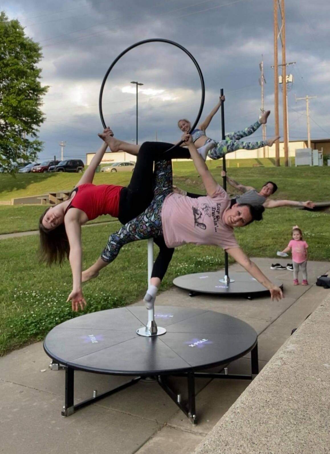 Erin is a stay-at-home mom, she lives in Ozark with her husband and three children. In her 30’s, Erin got into Aerial Fitness and started with Pole in 2014. The gravity defying tricks and strength it takes to make it look effortless was the root cause of her falling in love before she even stepped foot into a studio and touched a pole. Erin found our mother studio, bought a home pole, and attended classes when she could around pregnancies and c-sections. Erin loves that aerial fitness is open to so many different levels, backgrounds, cultures, styles, etc and the aerial community is one of the most loving and supportive communities you will ever come across. Aerial Fitness literally changes everything!! And Erin wants to share that with you! She has a few idols, besides our “Pole Mom” Kasey; Jenyne Butterfly is the one that sparked her love for pole, watching the pure strength and control in those defying gravity tricks. You can find Erin currently working on getting her flexibility and core strength back on track! Erin’s advice for anyone that wants to try Aerial Fitness, “Your aerial journey can be whatever you want it to be. You craft it better than anyone.” Outside of teaching and managing, Erin and her family like to go camping, fishing, play board games, play at the park (yes, she plays on the monkey bars… who doesn’t? ; family movie night, riding motorcycles, she crochets and loves arts and crafts with the kids. She loves the Full Moon and Crystals and does Tarot and Oracle readings in her spare time, you could say she has a witchy side. If Erin could possess one super power, she would pick super flexibility. Catch Erin teaching many Pole and Aerial classes from Polga Flow, to Lyra Lingo, to various Workshops and Parties!! Erin is CPR certified. CirqFIT Lyra Certification acquired Sept 2021. Aerial Rigging Course by Delbert Hall completed Jan 2022. SpinCity Grounded Hoop Certification acquired 2023. Erin is currently taking Canadian Pole Fitness Association’s Above the Bar (Lyra) course, Polga certification, and chair dance express teacher training.